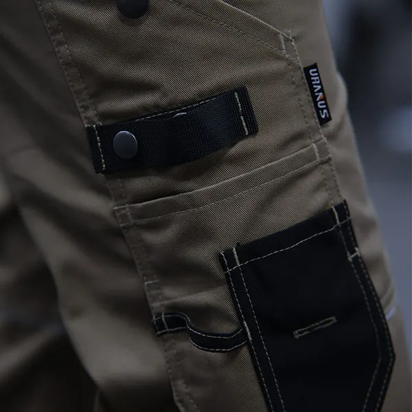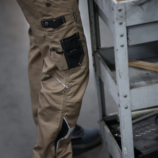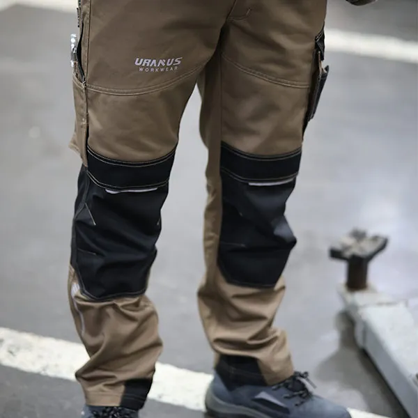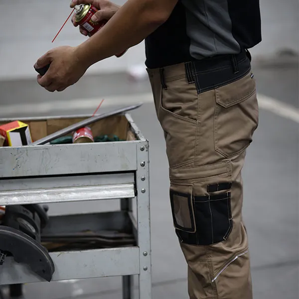 Эргономичный дизайн включает в себя классический прямой крой, усиленные швы и практичные карманы для хранения инструментов, устройств и личных вещей. Сочетание прочности твила, прочности оксфорда 600D и эластичности эластичной ткани делает эти брюки идеальными для работ, требующих больших физических усилий, таких как строительство, логистика и техническое обслуживание.